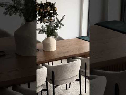 Verschönern Sie Ihr Esszimmer mit dem Luna-Stuhl, einem Beispiel für skandinavisches Design. Genießen Sie den weichen Bouclé-Stoff, der in fünf Farben erhältlich ist, und die einfache Montage. Lesen Sie mehr