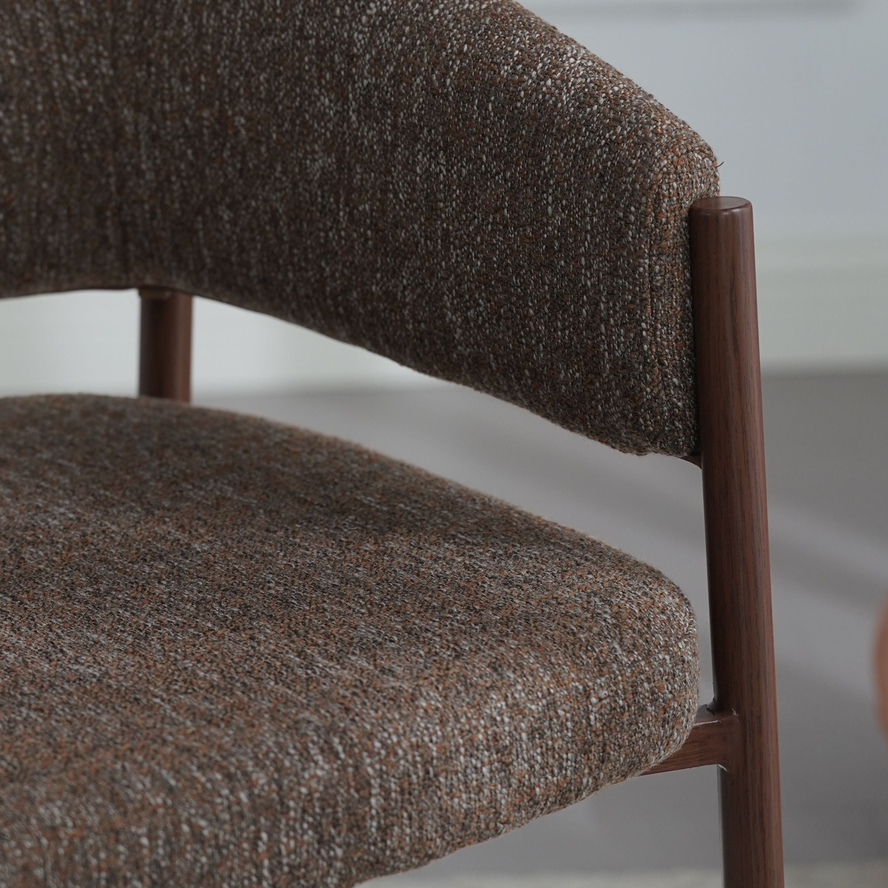 Verfraai je eetkamer met de Luna stoel, een toonbeeld van Scandinavisch design. Geniet van het zachte Bouclé stof, verkrijgbaar in vijf kleuren, en de eenvoud van montage.